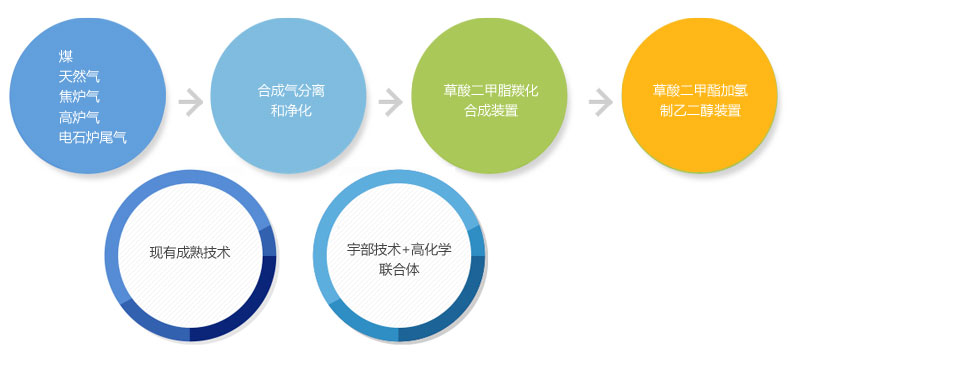高化学集团(HighChem)在宇部兴产的技术支持下,联合东华工程科技有限公司(ECEC)、浙江联盛化学工业公司进行了草酸二甲脂加氢制乙二醇工艺技术的开发,同时建立了中试基地,编制完善了合成气制乙二醇的工艺包,并在中国进行推广。世界首套SEG®技术装置于2013年1月初在中国新疆一次开车成功。