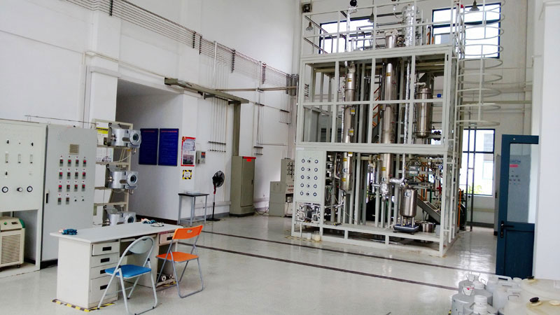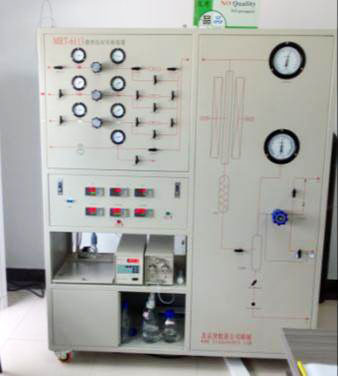 装置分为由四路气体和三路液体进料,配有循环氢气增压机、电加热器、DMO汽化器、DMO合成反应器及汽包等,可以实现气体的循环利用,高度模拟工业化装置。气路分别采用质量流量计进行控制和计量,液体原料采用精密计量泵进行计量和控制。主要机泵、仪表设备均采用国外知名品牌。自控系统采用DCS 集散控制系统,配置多级关键的保护系统,确保装置系统的操作人员和设备的安全。